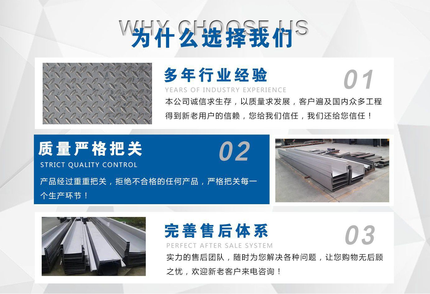 無錫鑫昌源金屬制品有限公司產品304不銹鋼天溝,不銹鋼花紋板,不銹鋼天溝,不銹鋼水槽,不銹鋼板加工等業務.廣泛用于機械設備,室內外裝修,噪聲治理,貨架網以及化工業,食品加工業,油礦開采業的過濾設備?! 「哔|量的產品:高質量的產品是企業發展的根本,在嚴把質量關的同時,產品的每一環節都做到嚴格質檢,高標準出廠。只有不斷的提高產品的質量,才能滿足客戶的要求,企業也得以發展。 良好的信譽:“信譽”作為中國企業走向世界的準入證,是市場經濟的血管和命脈。一直以來,“信譽”代表了我公司的市場名譽,得到了廣大客戶的認可。 優質的售后服務:優質的售后服務源于企業,我公司始終以“品質為本,服務至上”作為企業宗旨。只要你訂購了我公司的產品,無論你身處何方,我們都會及時派出專業的技術人員為你服務,你的滿意是我們的承諾!...